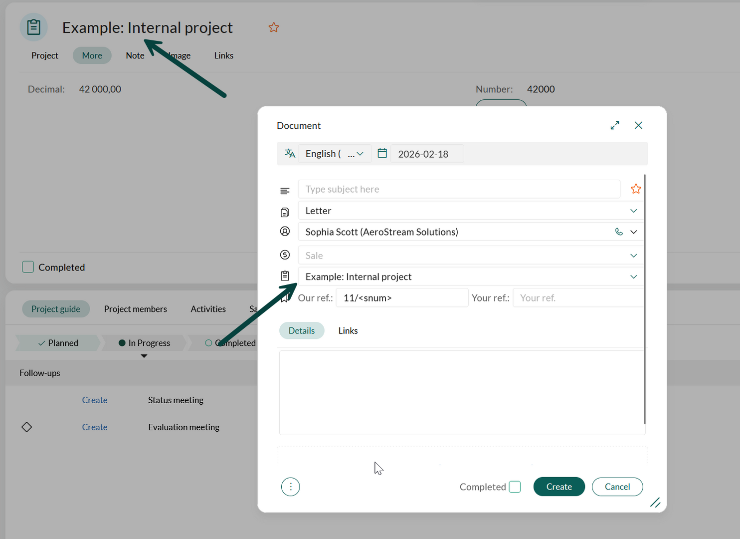 When looking at the database structure, you should be able to to set the project Id in for the corsponding activity for that document.