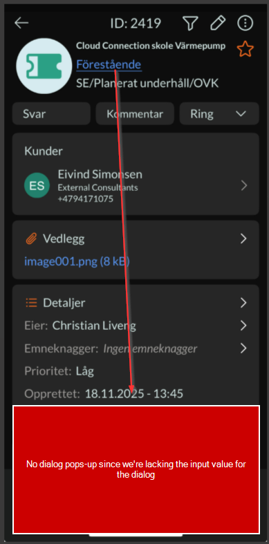 I expected the dialog to appear every time the ticket status is changed in Mobile CRM.