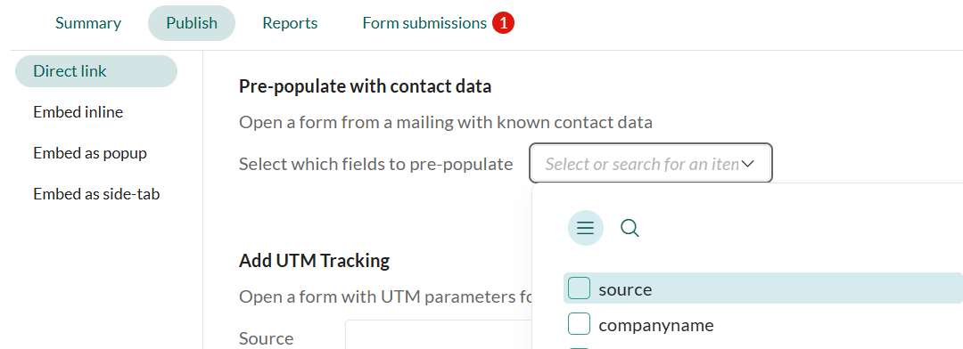 In your case you could change the UTM source depending in the place of the form, giving you a unike link for each form, and having this info trackable.