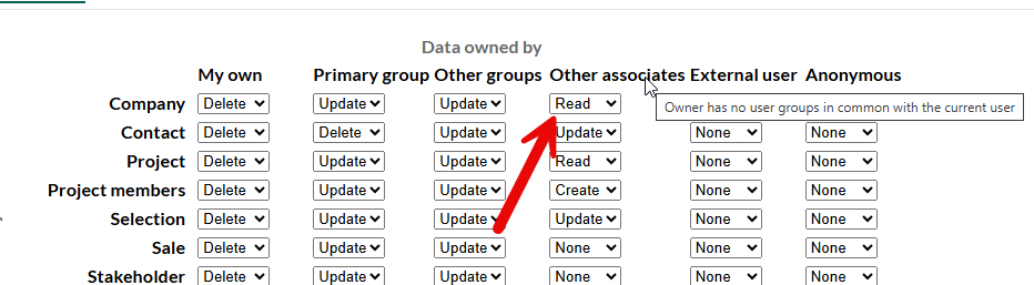 This means a user cannot create or update a company where the user has no user groups in common with the current user.