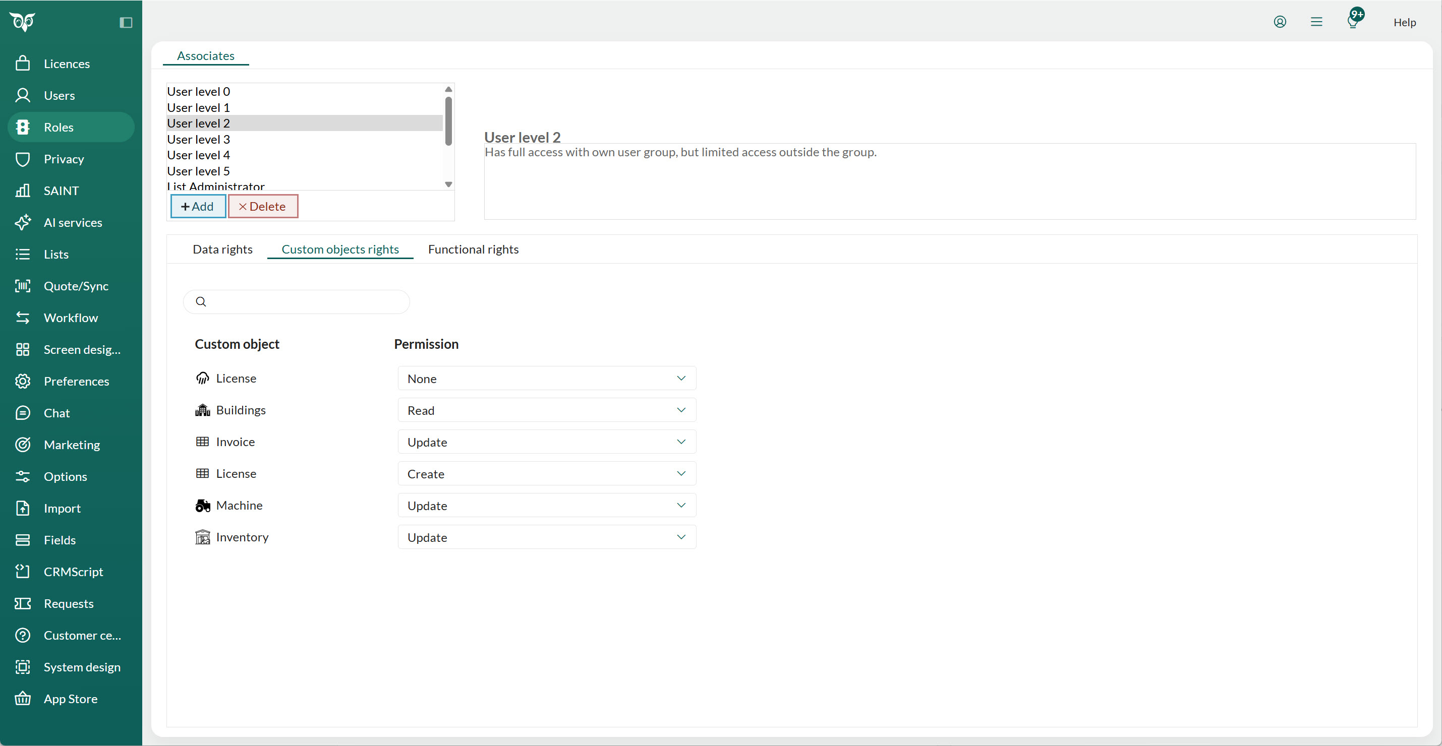 Security and data governance get a major upgrade with role-based access controls for Custom Objects. You can now assign specific access rights (None, Read, Create, Update, Delete) to each Custom Object based on user roles, ensuring that team members see exactly what they need to see—and nothing they shouldn't.