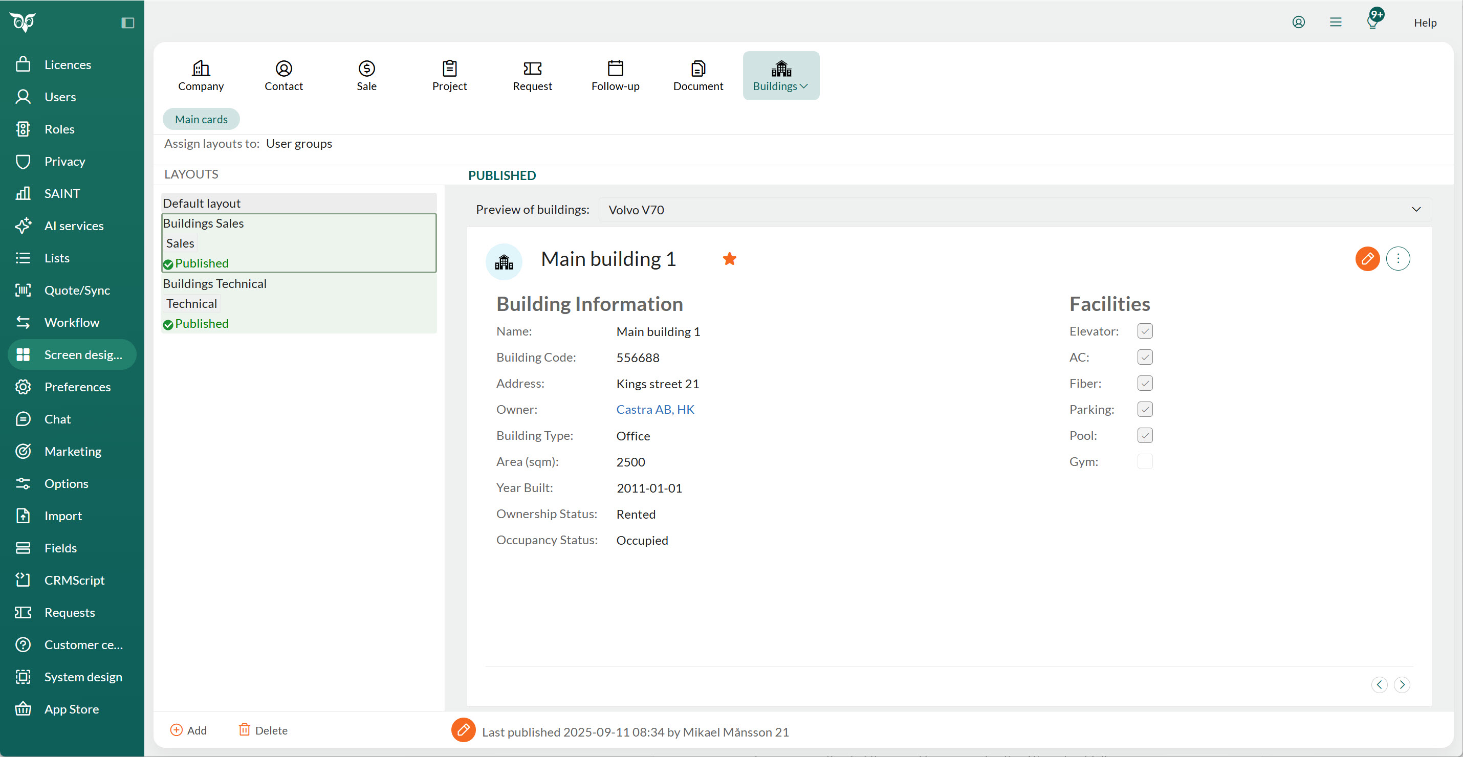 Design the layout of your Custom Objects using the familiar Screen Designer interface. This gives you complete control over how information is presented and allows you to assign different layouts for the same Custom Object based on User Group. This flexibility works for both full entity Custom Objects and modal versions.