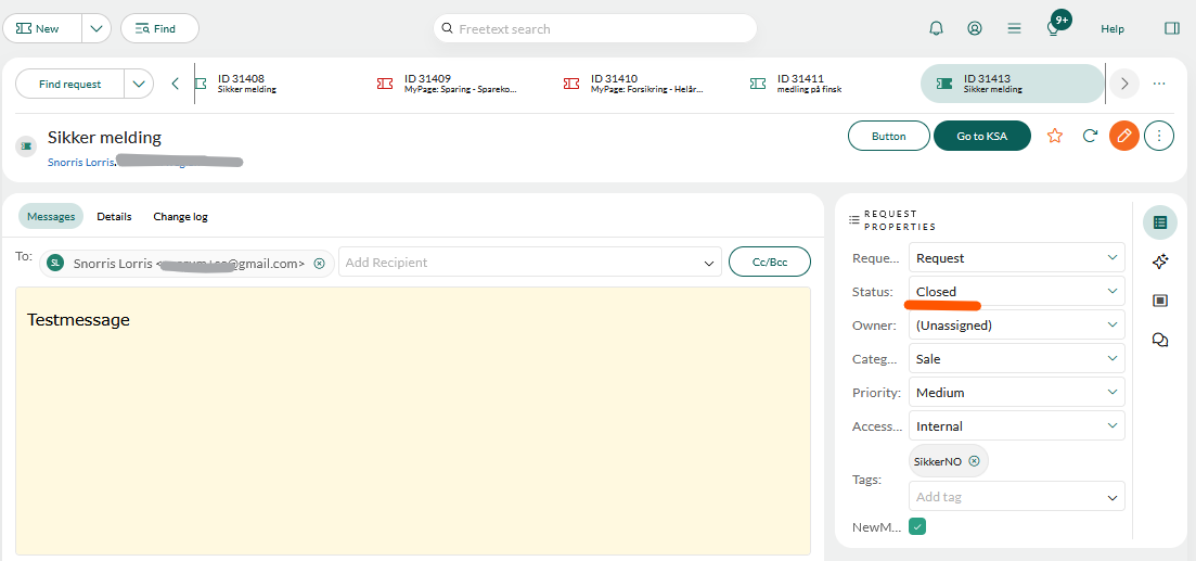 This trigger works fine, except for one thing. If the support personell chooses to close the request while adding a message, the request is only sometimes being closed. It looks like it is closed at first sight, but if refreshing the browser I see that the request is still open.