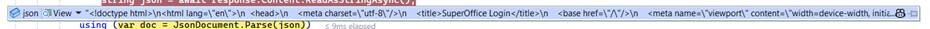 This is this response content – html SuperOffice login page, not JSON and not a user ticket.