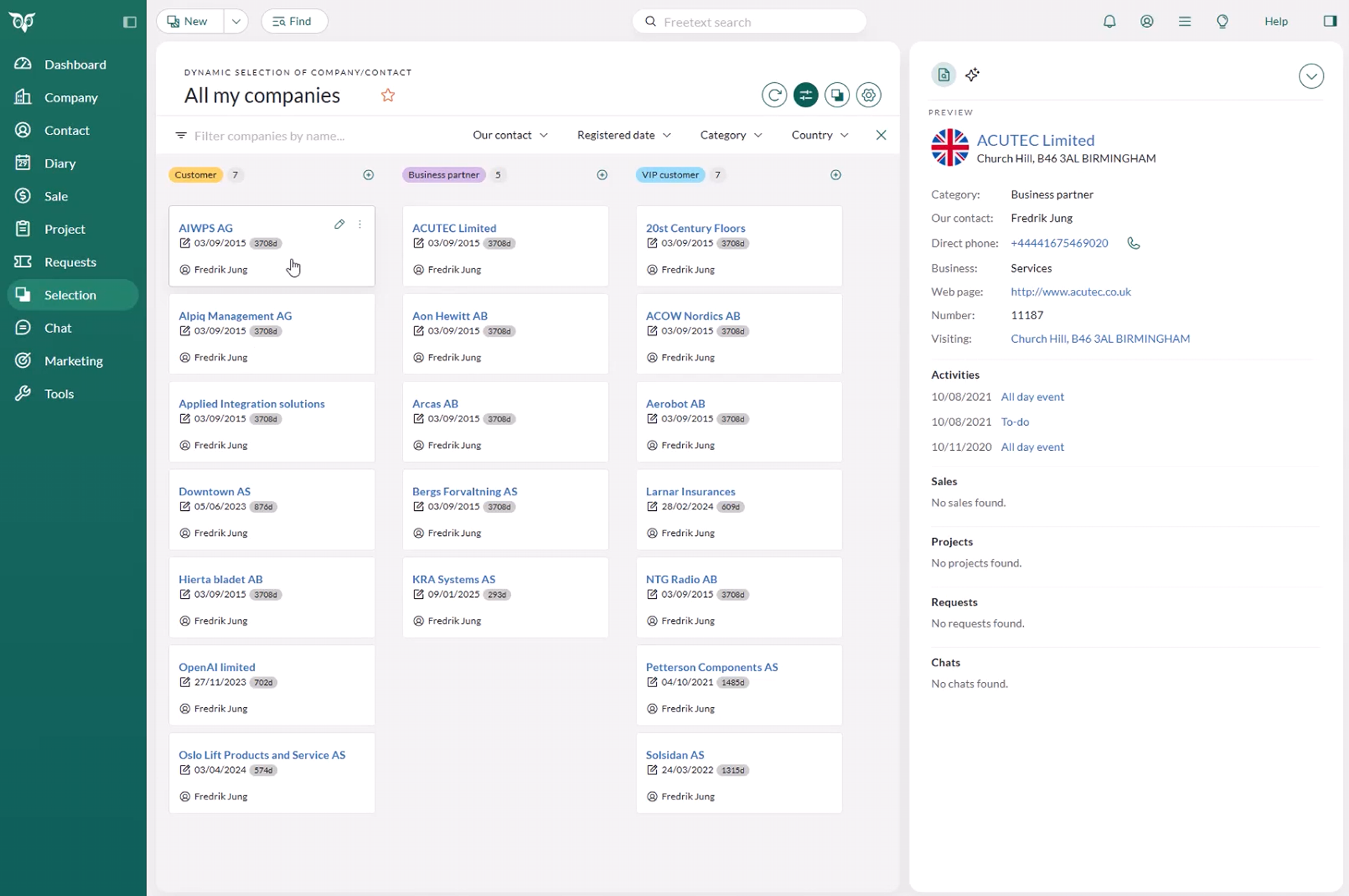 For sales users, using Board view for sales in Selections allows gaining greater control by having all sales in view at once, as well as improving the user experience with an intuitive drag-and-drop functionality to move sales between stages. Board view can help users increase sales by improving sales visibility, simplifying updates, and speeding up decision-making as a result of keeping a clear overview at all times.