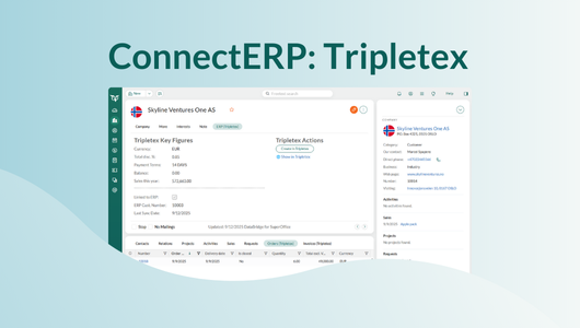 Tripletex is the latest ERP system to connect with SuperOffice. This integration helps ensure your CRM and ERP data stay perfectly aligned, opening the door to new efficiency gains and revenue opportunities. But this is not all, more ERP connections are on the way!